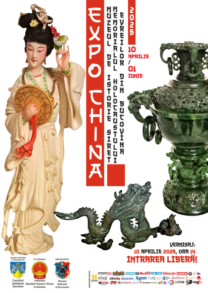 72 de exponate reprezentând artă chinezească din jad, fildeş, porţelan, lac, cloisonne, bronz, tapiserii și tablouri sunt expuse la Muzeul de Istorie Siret – Memorialul Holocaustului Evreilor din Bucovina, în perioada 10 aprilie – 1 iunie 2025.