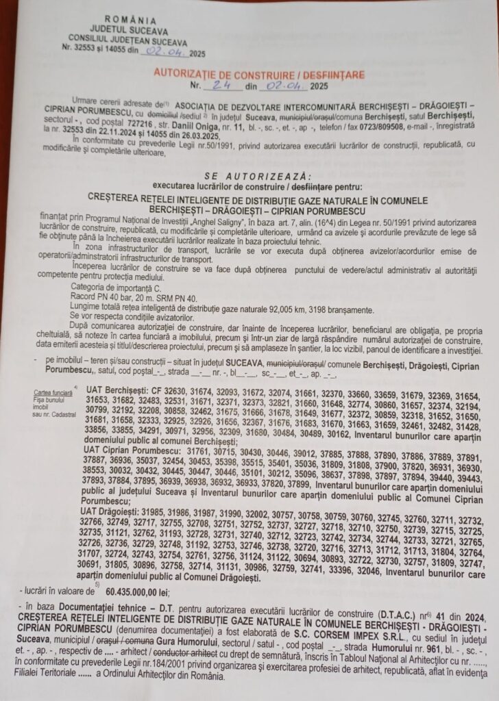 Comunitățile din Berchișești, Drăgoiești și Ciprian Porumbescu fac un pas semnificativ spre modernizare, odată cu emiterea autorizației de construire pentru proiectul „Creșterea rețelei inteligente de distribuție gaze naturale”. Anunțul a fost făcut de Violeta Țăran, primarul comunei Berchișești, după ce președintele Consiliului Județean Suceava, Gheorghe Șoldan, a semnat documentul care permite trecerea la etapa concretă a investiției.