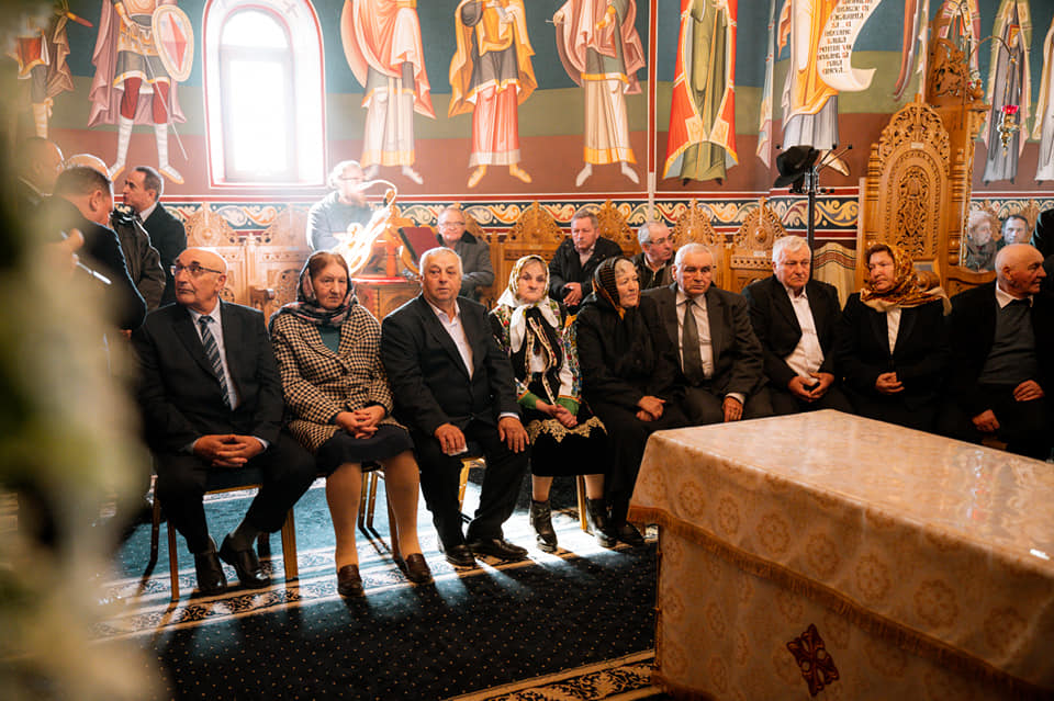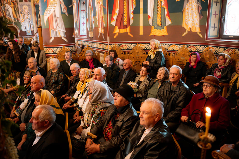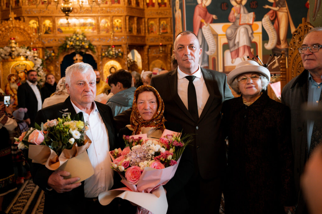 Sărbătoarea a debutat cu o slujbă de mulțumire oficiată de un sobor de preoți din toate satele comunei, alături de preotul paroh Filaret Ruscan. În cuvântul de învățătură, unul dintre slujitori a subliniat importanța dragostei, a respectului și a credinței ca temelii ale unei căsnicii durabile, adresând totodată cuvinte de binecuvântare și recunoștință față de cei care au reușit să atingă această frumoasă borna de 50 de ani împreună.