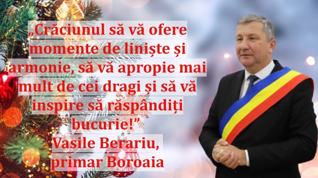 ConectareBine ați venit! Autentificați-vă in contul dvsnumele dvs de utilizatorparola dvs Ați uitat parola? obține ajutorRecuperare parolaRecuperați-vă parolaadresa dvs de email O parola va fi trimisă pe adresa dvs de email. „Crăciunul să vă ofere momente de liniște și armonie, să vă apropie mai mult de cei dragi și să vă inspire să răspândiți bucurie!” | Vasile Berariu, primar Boroaia24 decembrie 2025AcțiuneFacebookXPinterestWhatsApp admin_client414162CautăArticole recente,,Puls în campus”, training de prim ajutor organizat de studenţii FLSC, în parteneriat cu organizația Crucea Roşie 29 aprilie 2026 ANUNȚ PUBLIC 29 aprilie 2026 Clovnul Bobo și un fost candidat la funcția de primar al comunei Bilca au fost reținuți pentru șantaj, după ce s-au transformat peste noapte... 28 aprilie 2026 Prefectul Traian Andronachi și-a anunțat demisia 28 aprilie 2026 Articolul precedent„Cu ocazia acestor Sărbători de iarnă, să descoperim frumusețea lucrurilor simple, să fim recunoscători și să împărtășim iubire în comunitatea noastră!” | Cătălin Sanduleac, primar ȘerbăuțiArticolul următor„Sărbătorile să vă găsească înconjurați de dragoste, cu sufletele pline de lumină și cu inimile deschise pentru gesturi frumoase!” | Dan Chidoveț, primar DărmăneștiRelated articles,,Puls în campus”, training de prim ajutor organizat de studenţii FLSC, în parteneriat cu organizația Crucea Roşie Featured 29 aprilie 2026 Clovnul Bobo și un fost candidat la funcția de primar al comunei Bilca au fost reținuți pentru șantaj, după ce s-au transformat peste noapte... Featured 28 aprilie 2026 Prefectul Traian Andronachi și-a anunțat demisia Politică 28 aprilie 2026