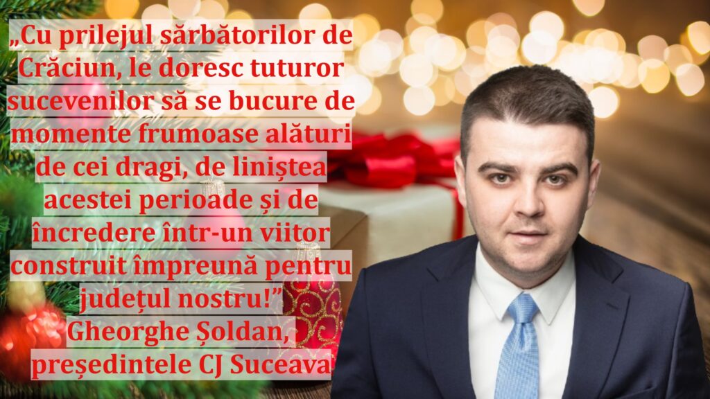 „Cu prilejul sărbătorilor de Crăciun, le doresc tuturor sucevenilor să se bucure de momente frumoase alături de cei dragi, de liniștea acestei perioade și de încredere într-un viitor construit împreună pentru județul nostru!” | Gheorghe Șoldan, președintele CJ Suceava