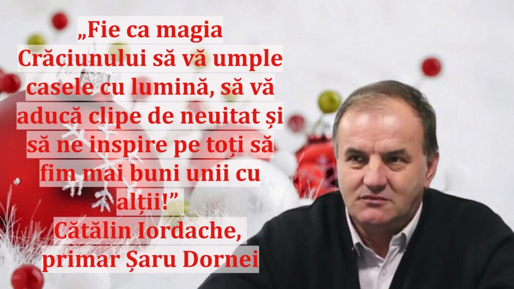 ConectareBine ați venit! Autentificați-vă in contul dvsnumele dvs de utilizatorparola dvs Ați uitat parola? obține ajutorRecuperare parolaRecuperați-vă parolaadresa dvs de email O parola va fi trimisă pe adresa dvs de email. „Fie ca magia Crăciunului să vă umple casele cu lumină, să vă aducă clipe de neuitat și să ne inspire pe toți să fim mai buni unii cu alții!” | Cătălin Iordache, primar Șaru Dornei24 decembrie 2025AcțiuneFacebookXPinterestWhatsApp admin_client414162CautăArticole recente,,Puls în campus”, training de prim ajutor organizat de studenţii FLSC, în parteneriat cu organizația Crucea Roşie 29 aprilie 2026 ANUNȚ PUBLIC 29 aprilie 2026 Clovnul Bobo și un fost candidat la funcția de primar al comunei Bilca au fost reținuți pentru șantaj, după ce s-au transformat peste noapte... 28 aprilie 2026 Prefectul Traian Andronachi și-a anunțat demisia 28 aprilie 2026 Articolul precedent„Dragi locuitori, cu ocazia Crăciunului vă doresc să simțiți din plin bucuria și căldura Sărbătorilor, să vă bucurați de momentele petrecute alături de cei dragi și să păstrați vie speranța unui an mai bun!” | Viorel Maxim, primar IacobeniArticolul următor„Gândurile mele se îndreaptă către fiecare familie din comunitatea noastră, cu dorința ca bucuria Crăciunului să vă însoțească și să vă aducă împreună cu cei dragi!” | Andrei Mazăre, primar Dorna AriniRelated articles,,Puls în campus”, training de prim ajutor organizat de studenţii FLSC, în parteneriat cu organizația Crucea Roşie Featured 29 aprilie 2026 Clovnul Bobo și un fost candidat la funcția de primar al comunei Bilca au fost reținuți pentru șantaj, după ce s-au transformat peste noapte... Featured 28 aprilie 2026 Prefectul Traian Andronachi și-a anunțat demisia Politică 28 aprilie 2026