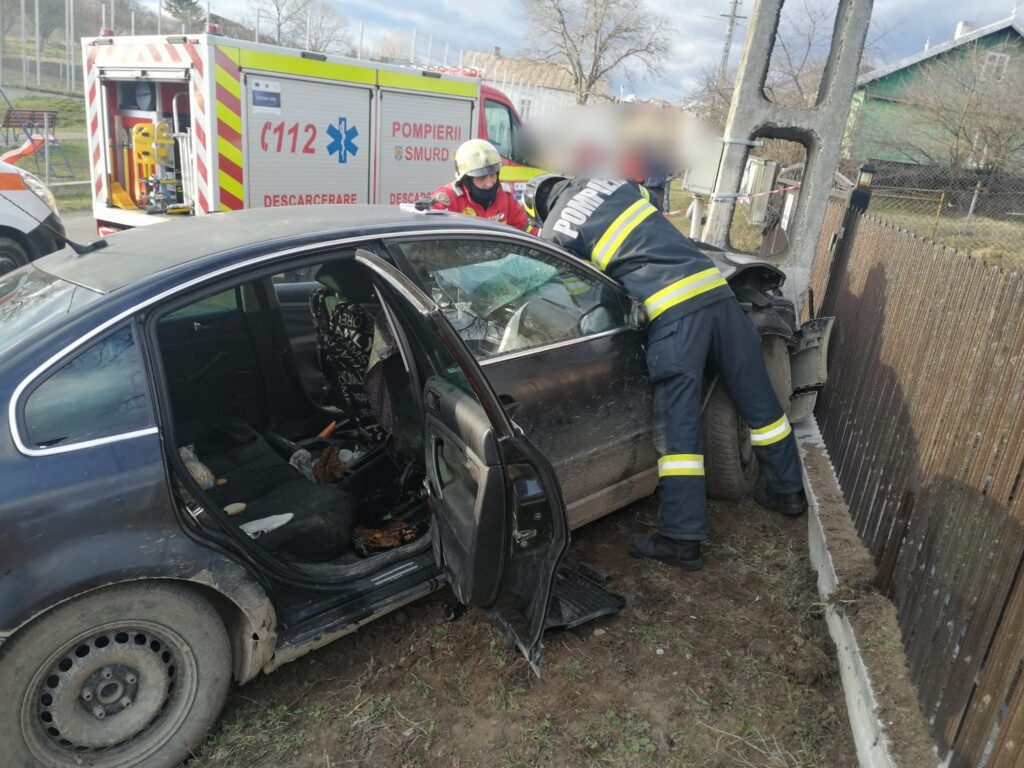 FOTO Cinci persoane au fost rănite după ce o mașină a intrat într-un stâlp de electricitate, la Brașca