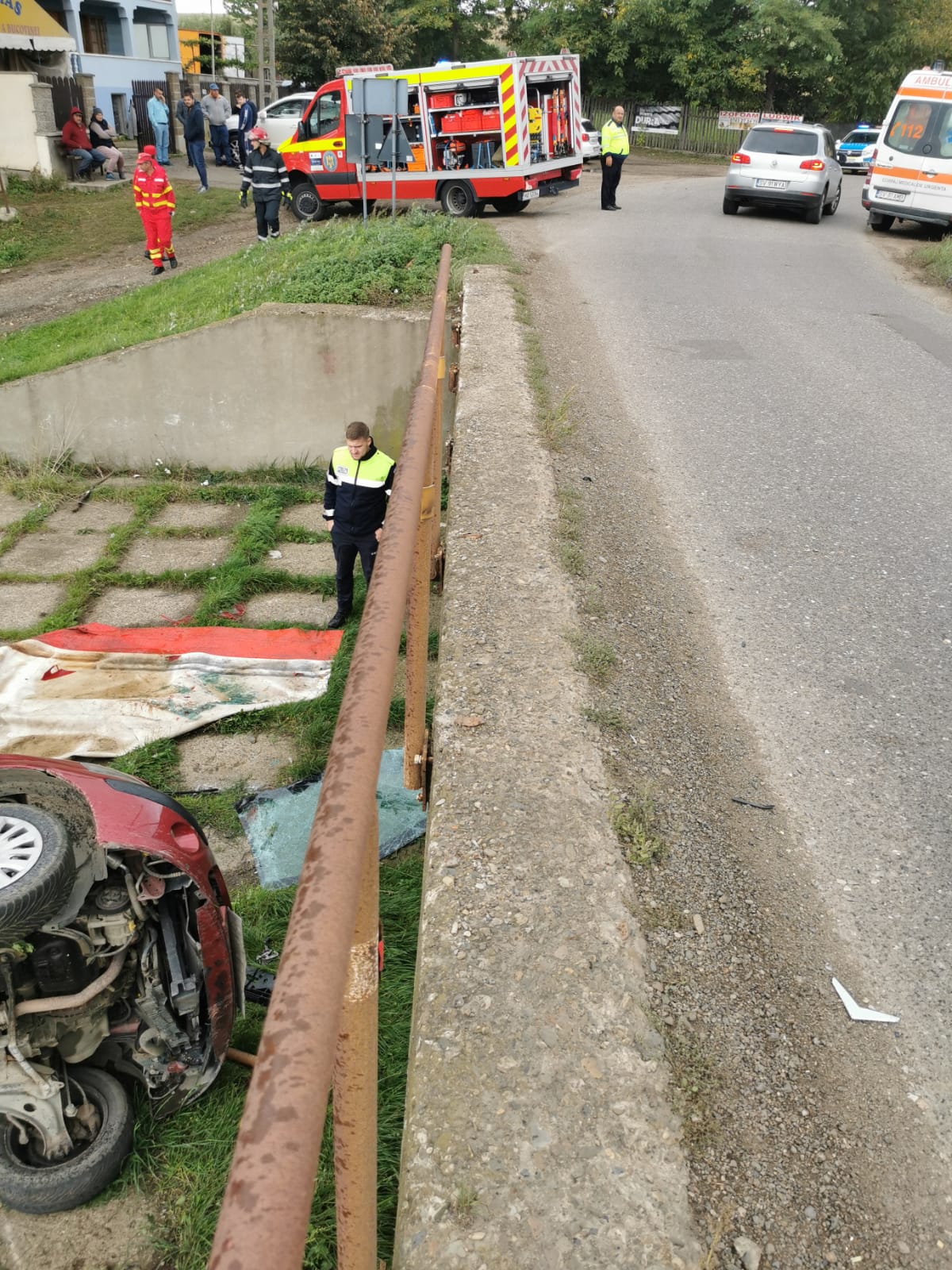 Din primele verificări s-a constat faptul că o femeie în vârstă de 52 ani a condus autoturismul din direcția Bosanci către satul Cumpărătura, a pierdut controlul asupra direcției de deplasare, a pătruns pe acostament și a lovit un parapet metalic, ulterior rasturnandu-se în afara părții carosabile de la o diferență de nivel de circa 2,5 metri.