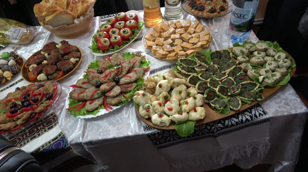 Platourile aranjate cu multă grijă au avut de la iahnie de fasole, sarmale cu miez de nucă, la ciorbă rădăuțeană de post sau răcituri cu ciuperci. Nu au lipsit nici prăjiturile, negresele cu glazură de ciocolată, fiind la loc de cinste.
