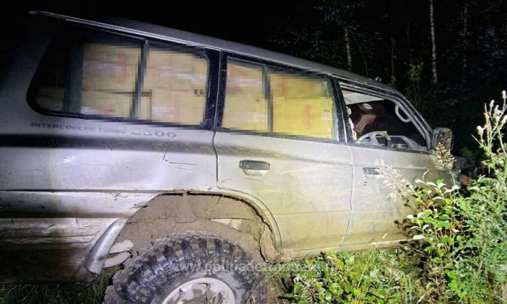 S-au dispus măsuri de monitorizare a zonei în vederea identificării și reținerii persoanei în cauză, iar în interiorul autoturismului de teren marca Mitsubishi, fără numere de înmatriculare, au fost observate mai multe colete voluminoase care conțineau țigări.