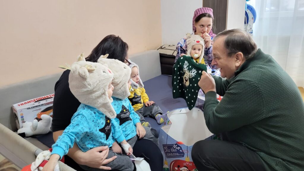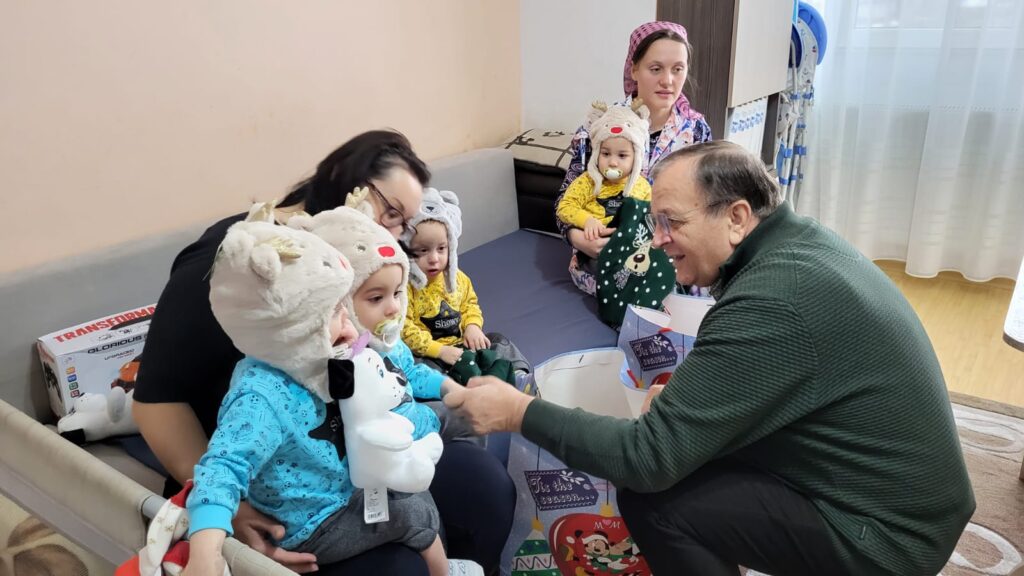De Moș Nicolae președintele Consiliului Județean (CJ) Suceava, Gheorghe Flutur, a vizitat o familie de cvadrupleți din comuna Șcheia.