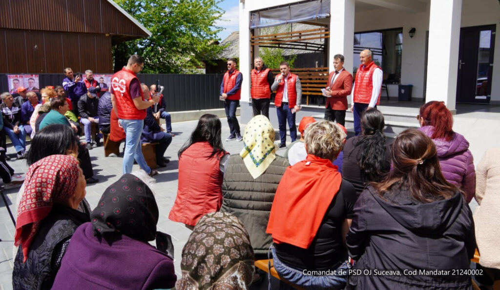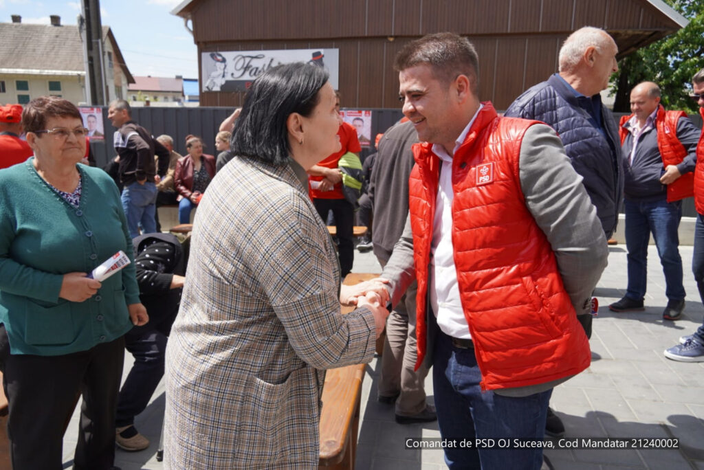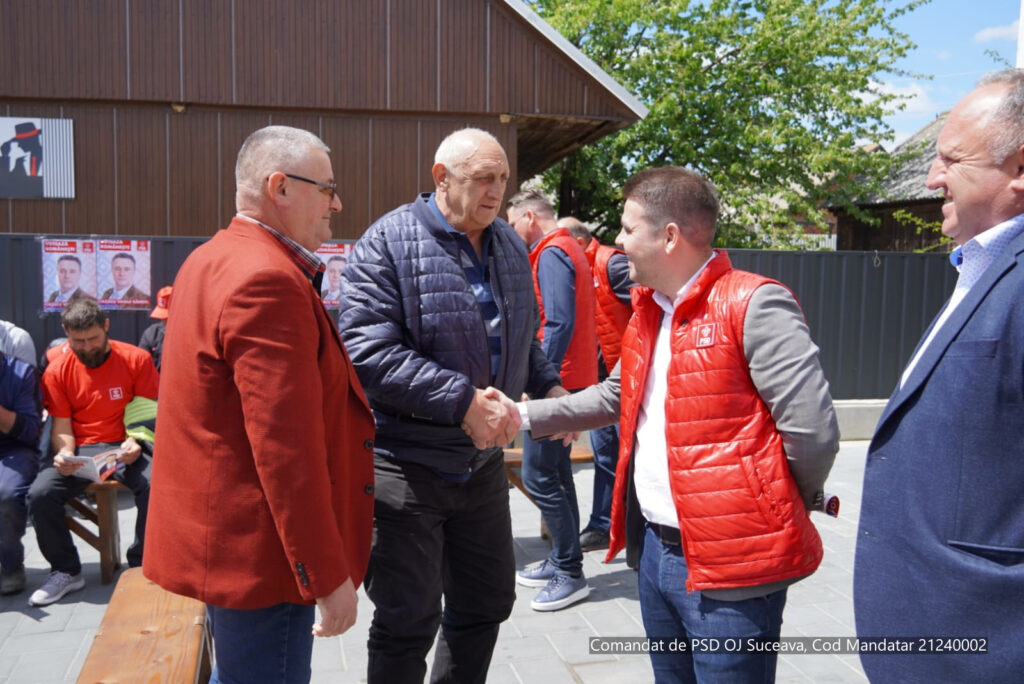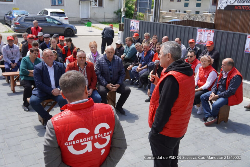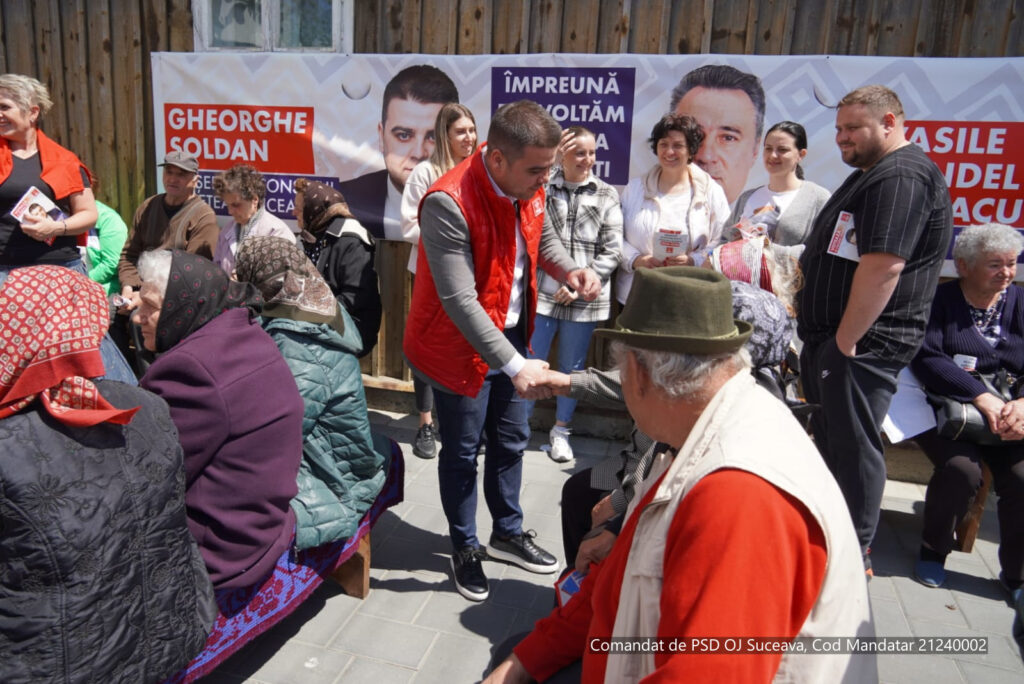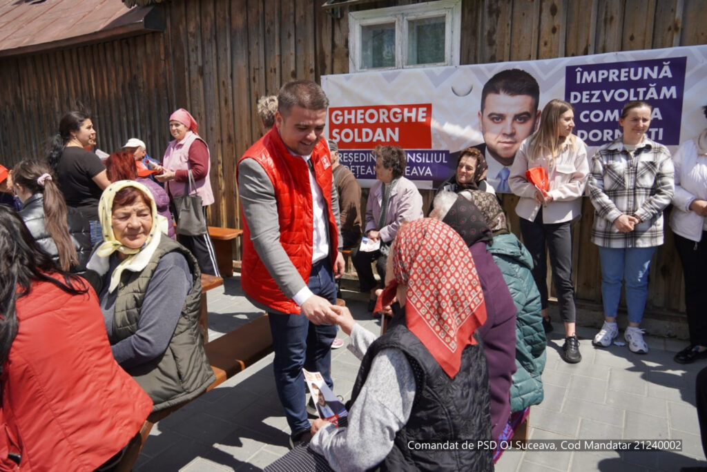 „Astăzi m-am întâlnit cu locuitorii comunei Dornești în centrul localității, sub cerul liber, deoarece căminul cultural este în renovare din 2016 și lucrările nu au fost încă finalizate. Aceasta este realitatea unei administrații locale care, de 20 de ani, nu a reușit să ducă la bun sfârșit angajamentele luate. Alături de mine a fost o parte din echipa PSD Suceava, dar și Vasile Săndel Cazacu, candidatul nostru pentru funcția de primar al Dorneștiului. Vasile, tată a patru copii, a servit comunitatea ca viceprimar în perioadele dificile ale inundațiilor din 2008 și 2010. Acum, experiența și devotamentul său sunt din nou necesare comunității. Vasile și viitoarea sa echipă de consilieri locali prioritizează finalizarea proiectelor esențiale amânate de administrația actuală, extinderea rețelelor de apă și canalizare și modernizarea infrastructurii locale. Îl voi sprijini pe Vasile Săndel Cazacu în găsirea fondurilor necesare pentru celelalte proiecte pe care le are pentru Dornești, inclusiv construirea unui complex sportiv, a unui centru medical modern, a unei grădinițe cu program prelungit și a unui after-school pentru elevii din clasele primare. Așa cum am subliniat la toate întâlnirile cu locuitorii județului, dezvoltarea fiecărei localități înseamnă de fapt dezvoltarea județului. Voi fi un președinte de Consiliu Județean care, alături de echipa de primari și consilieri județeni, va sprijini fiecare comunitate pentru a se dezvolta. Avem nevoie însă, pe 9 iunie, de sprijinul cât mai multor suceveni”, a declarat Gheorghe Șoldan.