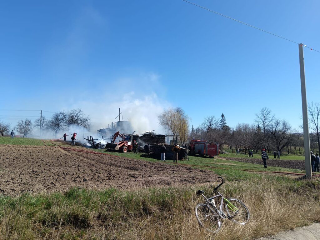 La fața locului au intervenit pompierii militari și civili, cu patru autospeciale de stingere și o ambulanță SMURD.