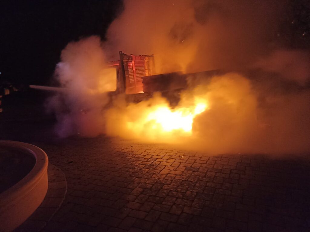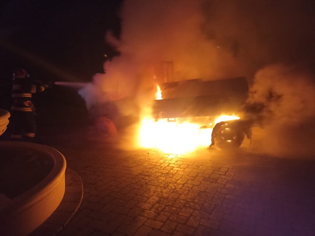 La sosirea echipajelor, ardea generalizat o autoutilitară, care era parcată în curtea unei gospodării, fără să existe pericolul de propagare la vecinătăți.