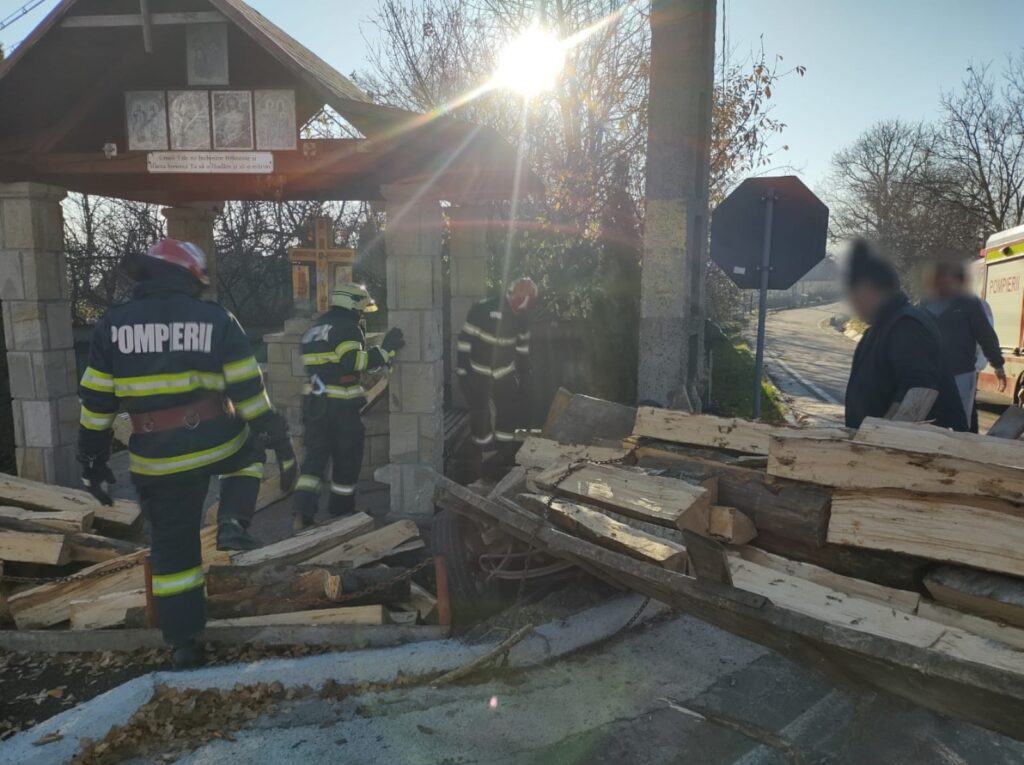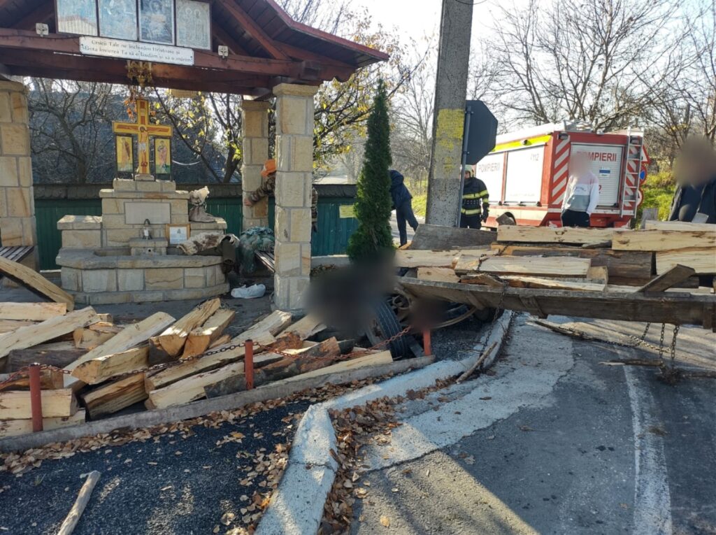 În această dimineață în jurul orei 08.00, o căruță încărcată cu lemne a ieșit în afara părții carosabile pe raza localității Lămășeni.