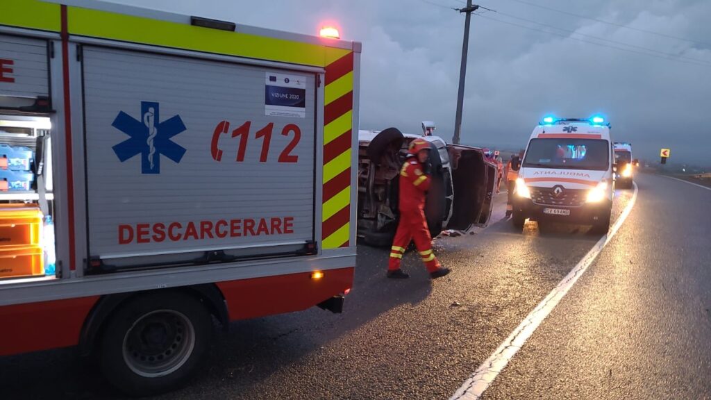 FOTO O dubă s-a răsturnat între Ilișești și Păltinoasa. Trei persoane au fost rănite