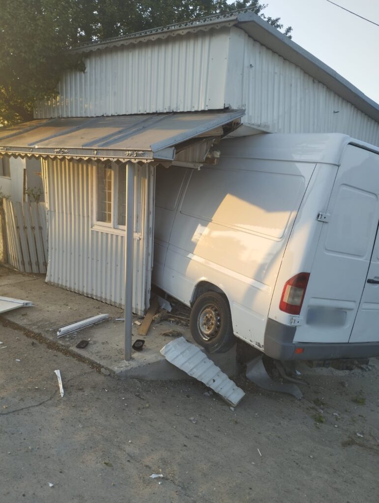 FOTO O dubă scăpată de sub control a intrat prin zidul unei case din Plopeni