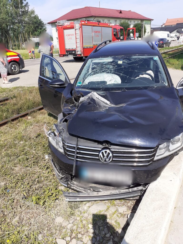 FOTO O femeie a fost rănită după ce mașina pe care o conducea a fost lovită de trenul Putna – Suceava, la Bivolărie