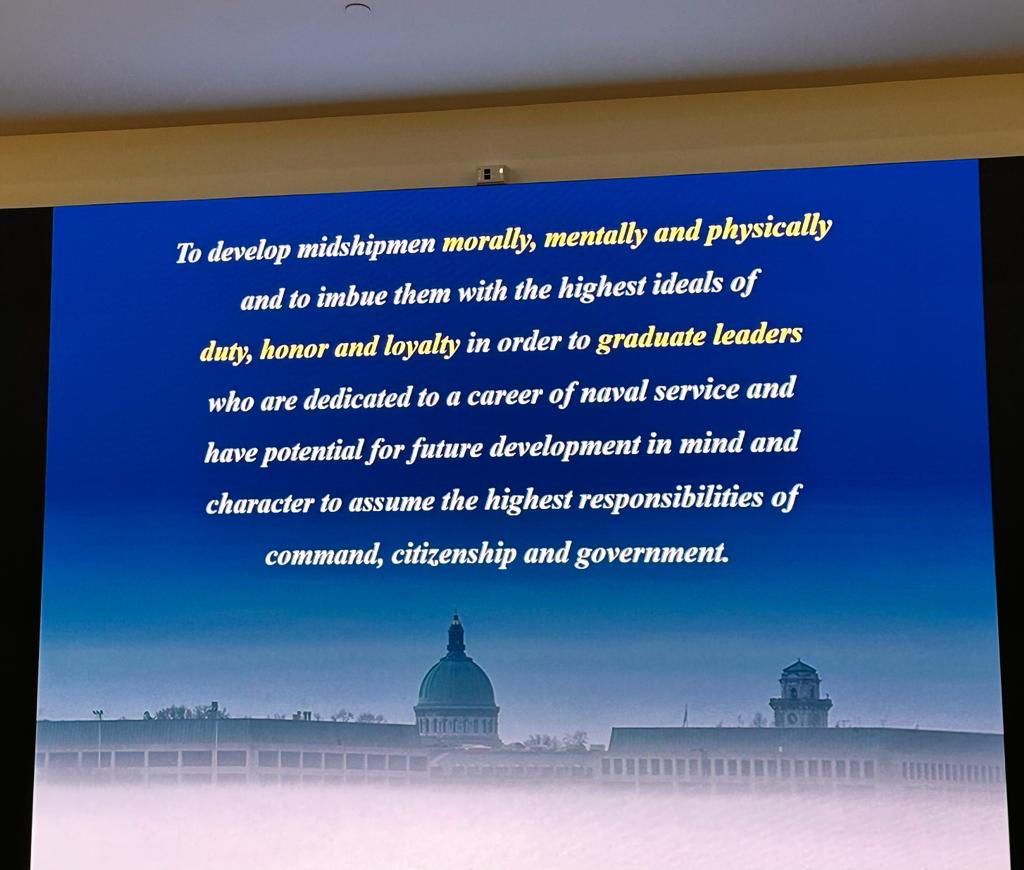 În ultima zi a Forumului a avut loc o vizită la US Naval Academy, Annapolis-Washington DC, unde s-au prezentat informații extrem de interesante despre condițiile de admitere, perioada studiilor și traseul profesional al absolvenților. Impresionante au fost condițiile de cazare avute la dispoziție de către studenți, dar mai ales infrastructura didactică de pregătire practică profesională. De altfel si moto-ul Universității Navale este relevant: „de a pregăti absolvenți din punct de vedere moral, mental și fizic, de a le insufla cele mai înalte idealuri de datorie, onoare și loialitate pentru a deveni lideri care sunt dedicați unei cariere de serviciu naval și au potențial de dezvoltare în minte și caracter pentru a-și asuma cele mai înalte responsabilități de comandă, cetățenie și guvernare”.
