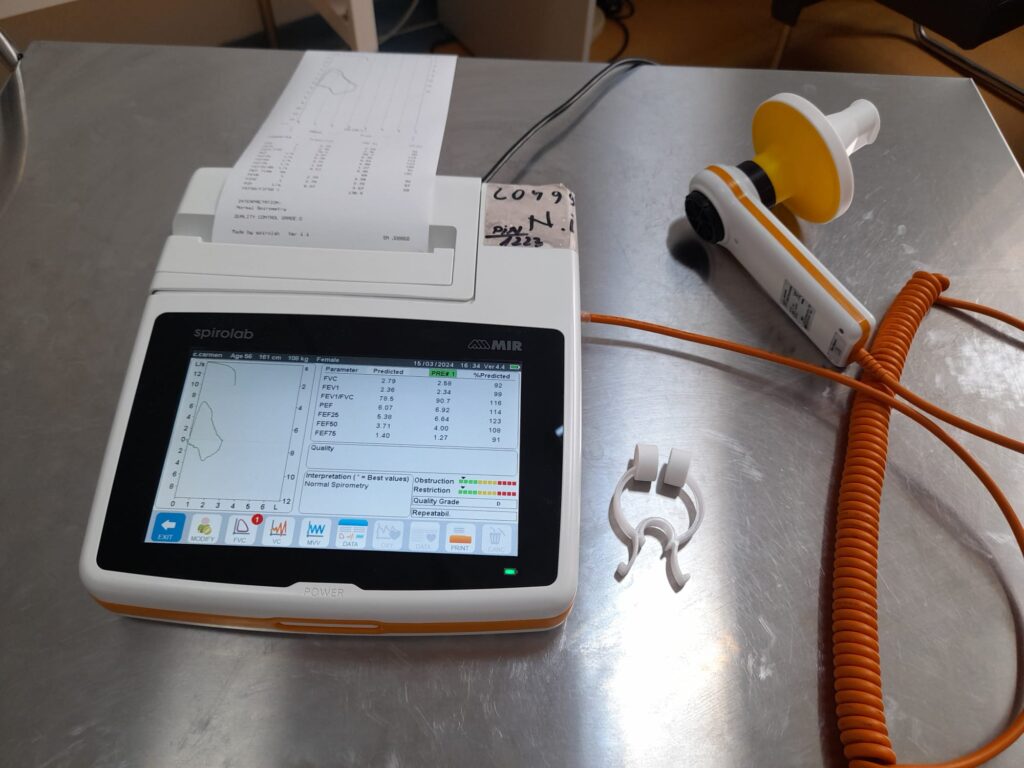 Terapia CPAP (ventilație cu presiune pozitivă) implică folosirea pe timpul nopții a unui aparat care introduce în căile respiratorii aer cu presiune pozitivă, menținându-le permeabile în timpul somnului. Pneumopatiile interstițiale difuze (fibroza pulmonară) reprezintă un grup de peste 200 de afecțiuni respiratorii și se diagnostichează și monitorizează în special prin tomografie computerizata cu înaltă rezoluție și explorare funcțională respiratorie (spirometrie, teste funcționale complexe – măsurarea difuziunii gazelor la nivel alveolo-capilar (DLCO)). Netratată, fibroza pulmonară duce la insuficiență respiratorie cu necesar de oxigen, hipertensiune pulmonară, insuficiență cardiacă dreaptă, tromboembolism pulmonar, pneumotorax, infecții pulmonare severe, cancer pulmonar. Tratamentul actual include folosirea de agenți antifibrotici, iar monitorizarea acestuia presupune efectuarea periodică a tomografiei computerizate și DLCO. Spirometria este principala metodă de diagnostic și monitorizare a afecțiunilor respiratorii obstructive (astm bronșic, boală pulmonară obstructivă cronică) și contribuie alături de anamneză și examenul clinic la stabilirea celui mai potrivit tratament pentru pacienții care suferă de aceste afecțiuni”, a declarat doctorul Nicolae Sorin, medic șef secție Pneumologie.