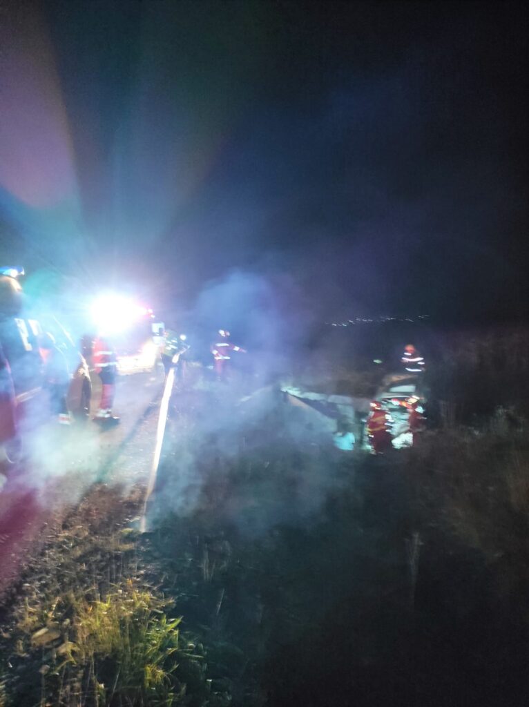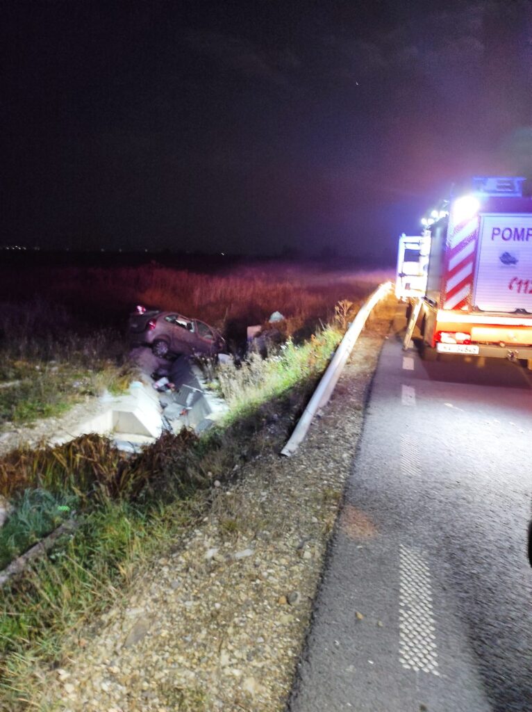 A fost identificată o singură victimă, prinsă între autoturism și șanțul de beton. Aceasta a fost extrasă de către pompieri și predată echipajului medical pentru monitorizare. Este în stare de inconștiență.