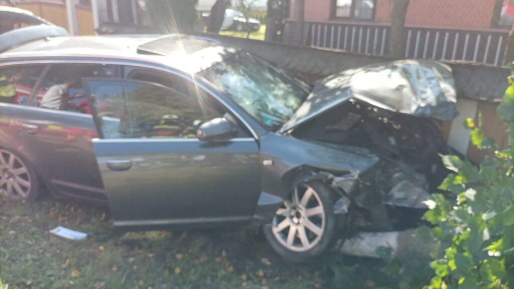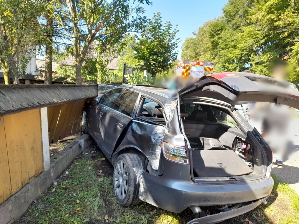 În urma coliziunii, automobilul Audi a ajuns în gardul unei case.
