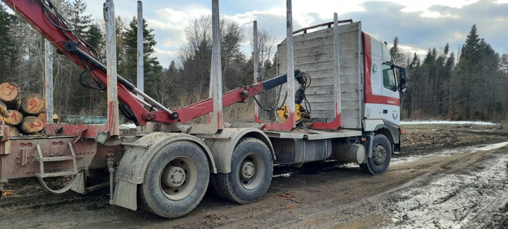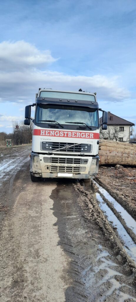 FOTO Un camion de 30.000 de euro folosit la transportul ilegal de lemne a fost confiscat după ce a fost oprit pe drumul forestier „Bogățica” care face legătura între Baia și Râșca