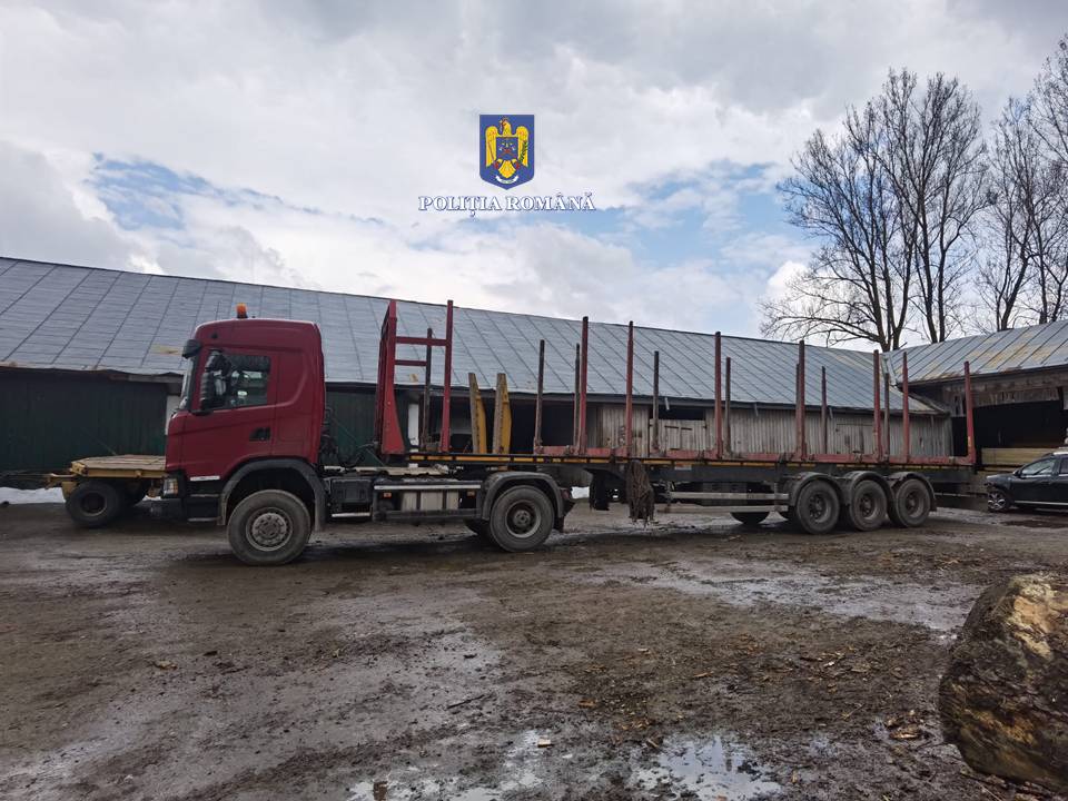 Totodată, polițiștii au confiscat încă un vehicul de mare tonaj utilizat la transportul a peste 10 mc material lemnos cu încălcarea legislației în domeniu fiind întocmit și dosar penal sub aspectul săvârșirii infracțiunii de transportul cu orice mijloace de transport al materialelor lemnoase, în volum de peste 10 mc, neînsoțite de documentele specifice de transport.