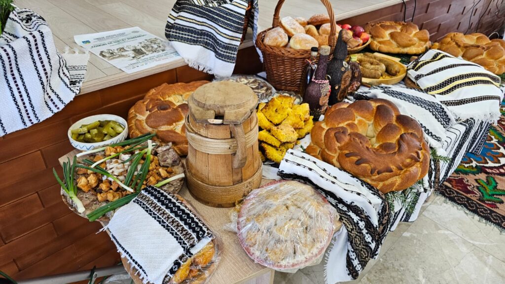 Gospodinele din Vatra Moldoviței i-au întâmpinat pe oaspeți cu bucate alese iar aceștia le-au mulțumit prin cântec, joc și multă voie bună.