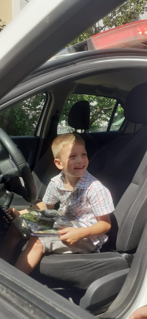 În acest weekend, de ziua lui, când a împlinit vârsta de 6 ani, autospecialele de poliție și polițiștii din cadrul Secției de Poliție Rurală Șcheia, câteva elemente de recuzită, dar și….. dulciurile primite l-au responsabilizat pe Viorel care va fi un sprijin real pentru polițiști în activitățile preventive pe perioada vacanței de vară, dar și după ce va merge la școală, într-un nou început, în clasa pregătitoare.