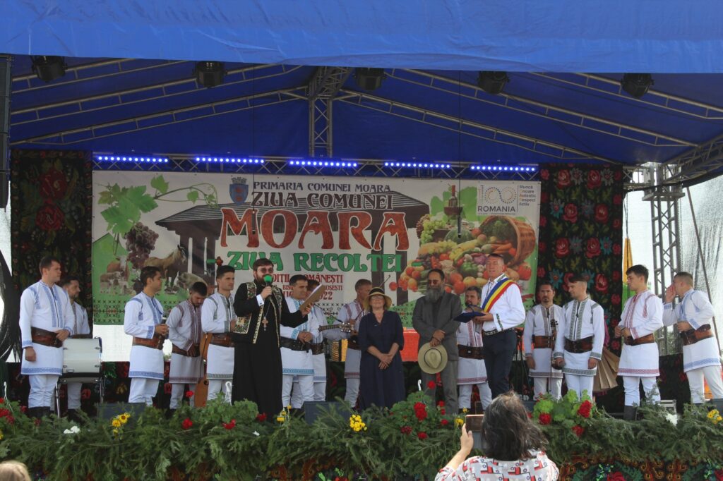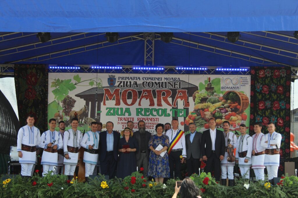 Un impresionant sobor de preoți, în frunte cu Preasfințitul Damaschin Dorneanu a oficiat o slujbă arhierească, duminică dimineață, în comuna Moara, slujbă care a marcat debutul evenimentelor organizate cu ocazia Zilei Comunei. An de an, administrația locală a acestei comunități, condusă de primarul Eduard Dziminschi, marchează această sărbătoare, iar duminică, după o pauză de doi ani din cauza restricțiilor impuse de pandemia de Coronavirus, toată suflarea din Moara s-a adunat pe terenul de sport al Școlii Gimnaziale Moara Nica, pentru a se bucura de atmosfera extraordinară. După slujba religioasă, edilul Eduard Dziminschi a felicitat cele 39 de cupluri care au împlinit 50 de ani de căsătorie, dăruindu-le flori, câte un tort și diplome care să marcheze Nunta de aur.