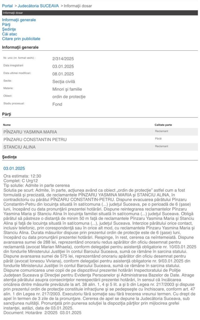 Cazul prezintă similitudini evidente cu un episod petrecut anul trecut, când Alina Stanciu și Yasmina-Maria Pînzaru au obținut ordine de protecție și împotriva lui Petru Constantin Pînzaru, tatăl fetei și fostul soț al consilierei locale. Atunci, situația a avut un deznodământ diferit, întrucât bărbatul a fost evacuat din locuință.