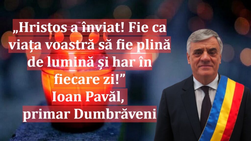 „Hristos a înviat! Fie ca viața voastră să fie plină de lumină și har în fiecare zi!” | Ioan Pavăl, primar Dumbrăveni