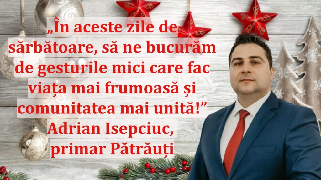 ConectareBine ați venit! Autentificați-vă in contul dvsnumele dvs de utilizatorparola dvs Ați uitat parola? obține ajutorRecuperare parolaRecuperați-vă parolaadresa dvs de email O parola va fi trimisă pe adresa dvs de email. „În aceste zile de sărbătoare, să ne bucurăm de gesturile mici care fac viața mai frumoasă și comunitatea mai unită!” | Adrian Isepciuc, primar Pătrăuți24 decembrie 2025AcțiuneFacebookXPinterestWhatsApp admin_client414162CautăArticole recenteClovnul Bobo și un fost candidat la funcția de primar al comunei Bilca au fost reținuți pentru șantaj, după ce s-au transformat peste noapte... 28 aprilie 2026 Prefectul Traian Andronachi și-a anunțat demisia 28 aprilie 2026 Conflict sângeros la o petrecere din Suceava. Un bărbat din Todirești a fost reținut după ce a atacat un invitat cu un cuțit 28 aprilie 2026 Tentativă de omor calificat la Rădăuți. Un bărbat a fost reținut după ce și-a atacat fosta concubină cu un cuțit în propria locuință 28 aprilie 2026 Articolul precedent„Crăciunul să fie o perioadă în care să ne apropiem mai mult unii de alții și să răspândim bunătate!” | Dumitru Nimițean, primar Ciprian PorumbescuArticolul următor„Dragi locuitori, vă dorim un Crăciun în care fiecare clipă să fie plină de lumină, iubire și armonie!” | Primăria și Consiliul Local MăliniRelated articlesClovnul Bobo și un fost candidat la funcția de primar al comunei Bilca au fost reținuți pentru șantaj, după ce s-au transformat peste noapte... Featured 28 aprilie 2026 Prefectul Traian Andronachi și-a anunțat demisia Politică 28 aprilie 2026 Conflict sângeros la o petrecere din Suceava. Un bărbat din Todirești a fost reținut după ce a atacat un invitat cu un cuțit Featured 28 aprilie 2026