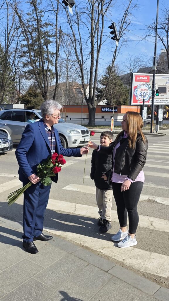 Această inițiativă a transformat o zi obișnuită într-un moment plin de culoare și zâmbete. Gestul oferirii unei flori a fost însoțit de urări de bine, subliniind recunoștința pentru rolul esențial pe care femeile îl au în familie, în comunitate și în viața de zi cu zi.