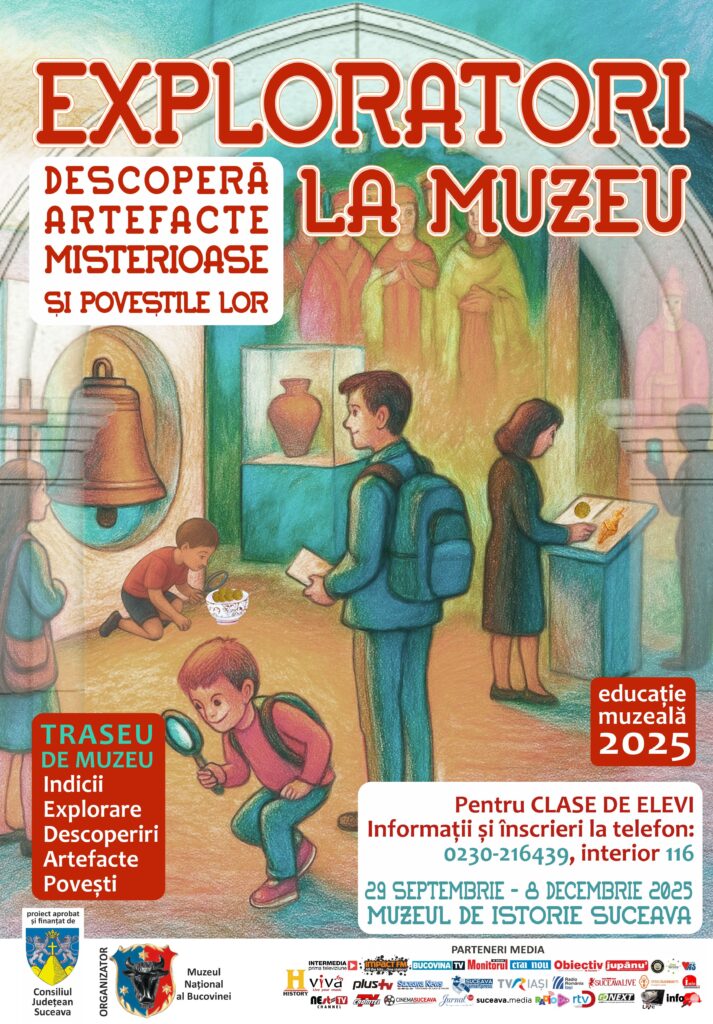 Muzeul Național al Bucovinei invită grupurile de copii să participe, în perioada 29 septembrie – 8 decembrie 2025, la programul educațional „Exploratori la muzeu”, o aventură interactivă prin expoziția permanentă a Muzeului de Istorie din Suceava.