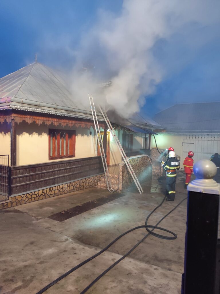 Incendiul a fost stins la ora 08.30, iar pompierii au salvat restul casei de locuit și construcția anexă, cu bunurile aferente.