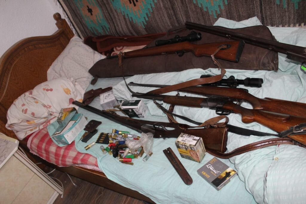 La domiciliul suspectului Marcel Cuceac, din Fundu Moldovei, au fost găsite patru arme letale de vânătoare, 150 de cartușe de diferite calibre și zece capcane metalice. În locațiile folosite de suspecții Ion Hauca și Horia Hauca, din Moldovița, Fundu Moldovei și Breaza, au fost ridicate zece arme letale de vânătoare și 480 de cartușe, toate deținute legal, însă anchetatorii au identificat și o armă de vânătoare fără serie sau număr, un model vechi, probabil din Al Doilea Război Mondial, deținută ilegal, precum și o capcană pentru animale mari. În același perimetru au fost găsiți și 125 de litri de alcool de proveniență incertă, cel mai probabil adus ilegal din spațiul extracomunitar.
