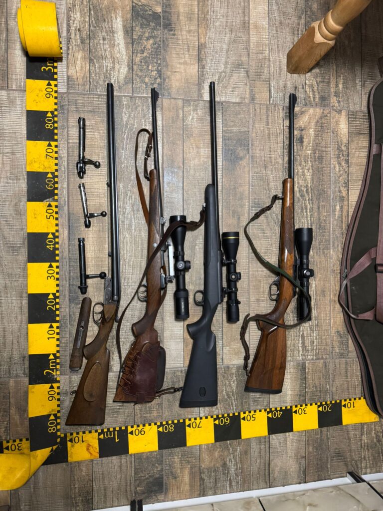 Pe 21 noiembrie 2025, polițiștii au pus în executare opt mandate de percheziție domiciliară, vizând cinci persoane suspecte în dosar. Descinderile au dus la identificarea și ridicarea unor arme, muniții și alte obiecte cu valoare probatorie, dar și la constatarea unor noi infracțiuni față de cele deja documentate.