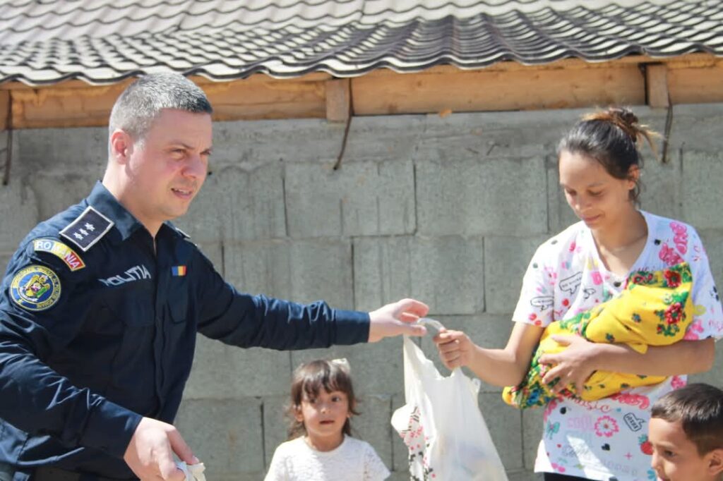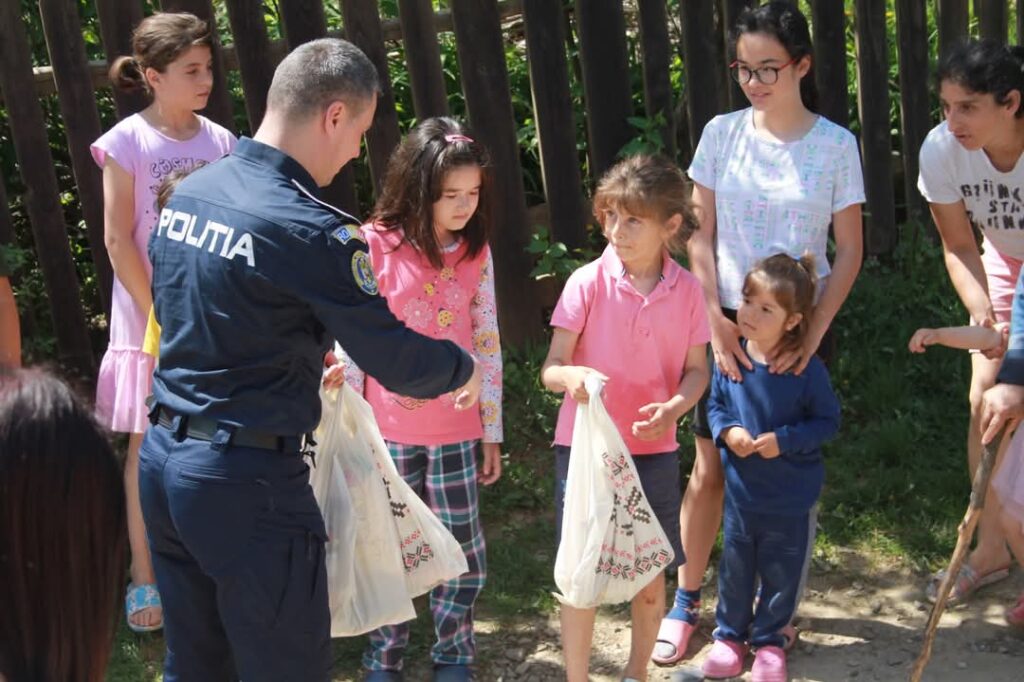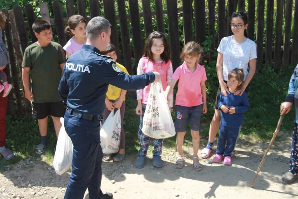 Peste 100 de copii din comunități defavorizate au primit dulciuri, rechizite și produse de igienă de la polițiștii suceveni și Asociația Euroactiv