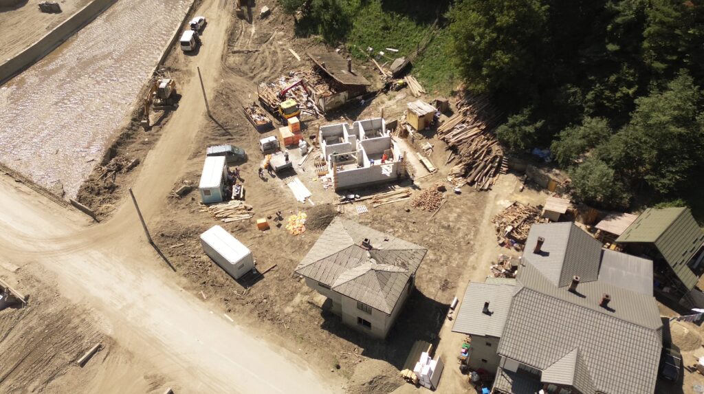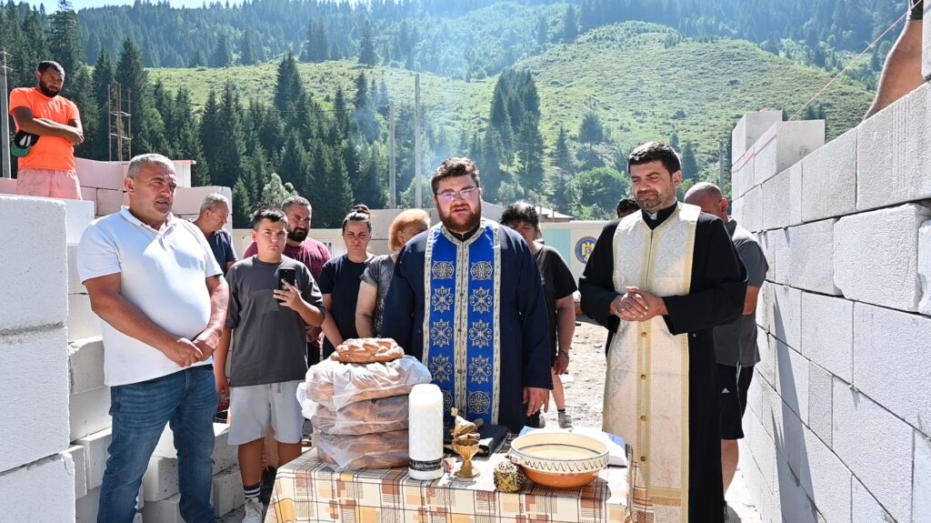 Ieri, doi preoți din Valea Moldovei au mers la Broșteni pentru a sfinți lucrarea, aducând binecuvântarea Bisericii peste noua casă. Momentul a fost încărcat de emoție, atât pentru voluntarii veniți să ajute, cât și pentru membrii familiei, care au văzut în acest gest un semn de speranță și renaștere după dezastru.