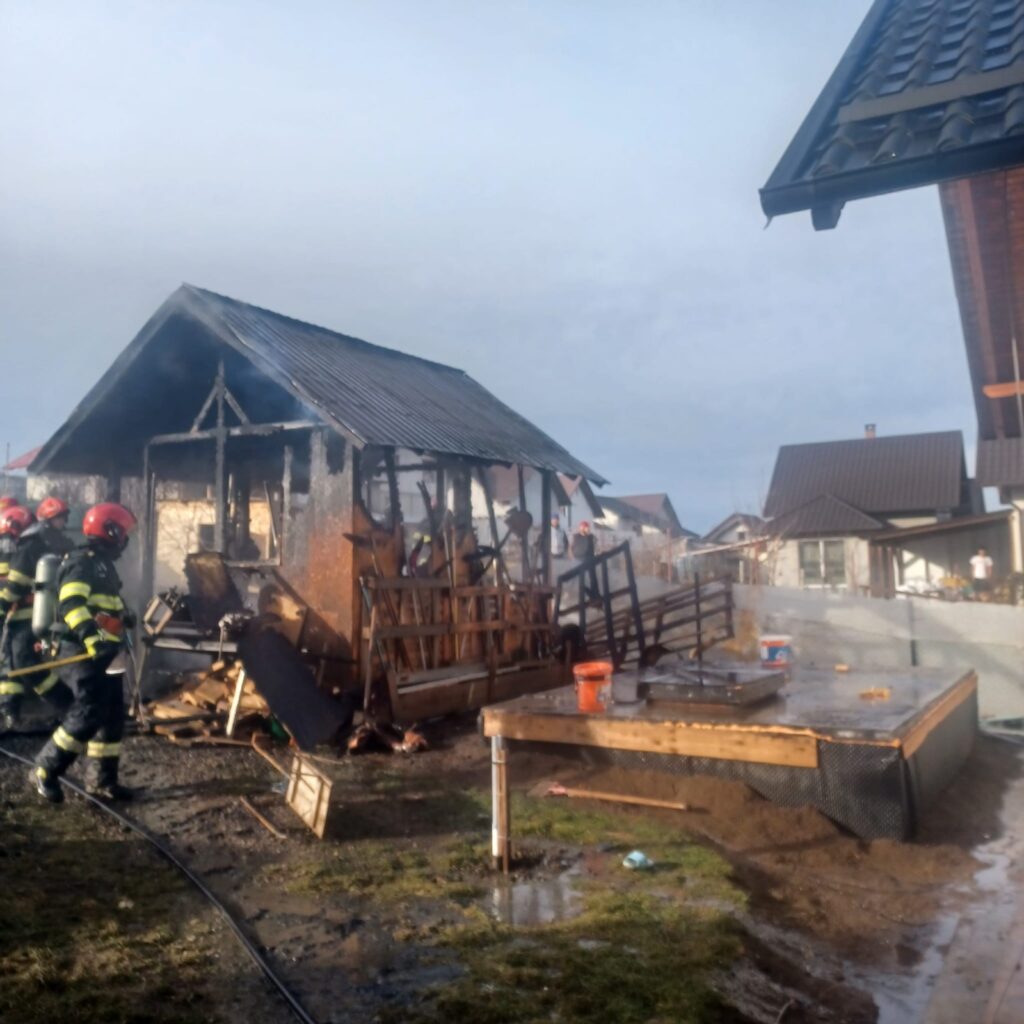 Incendiul s-a manifestat generalizat la construcția anexă, pe o suprafață de aproximativ 30 de metri pătrați.