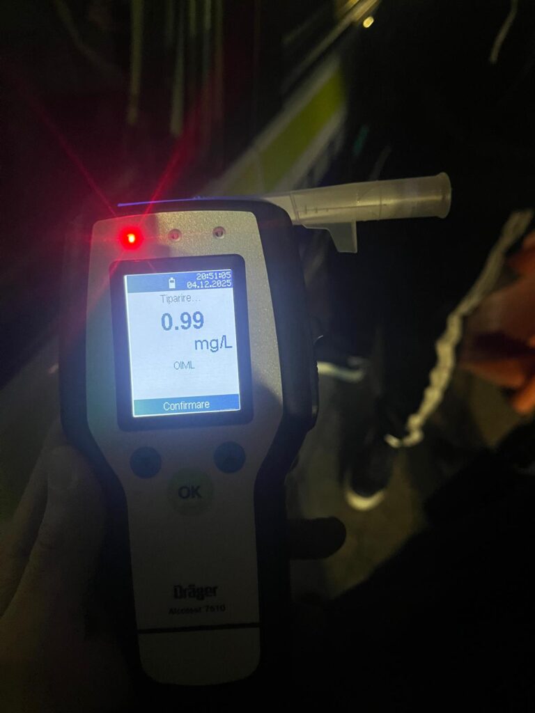 Incidentul s-a petrecut pe 4 decembrie 2025, în jurul orei 19.30, în zona Grup Școlar. Polițiștii au fost sesizați că un șofer aflat posibil sub influența alcoolului a provocat un accident soldat cu pagube materiale, după care s-a deplasat către restaurantul Latino.