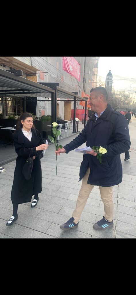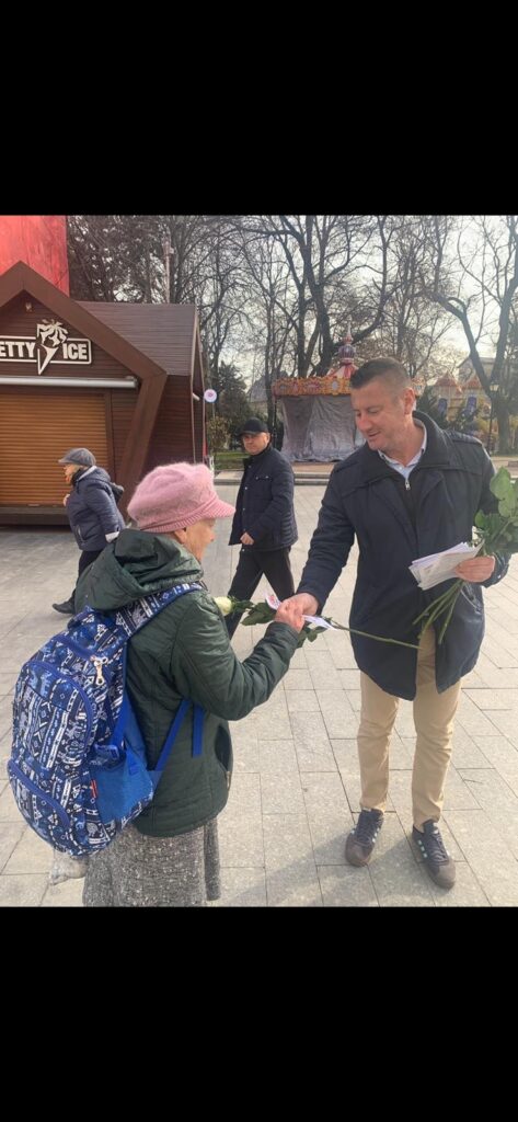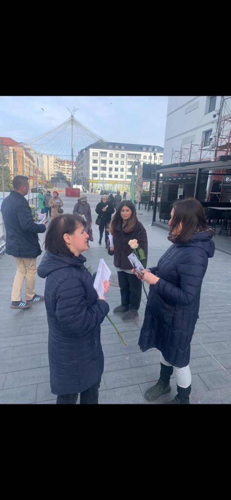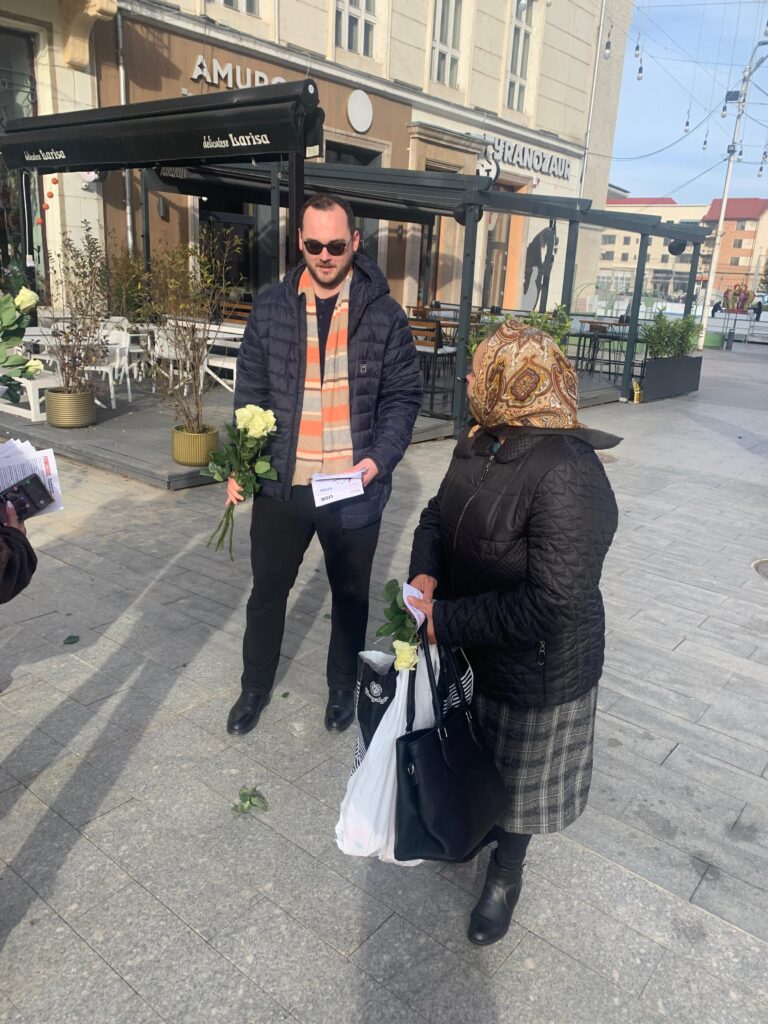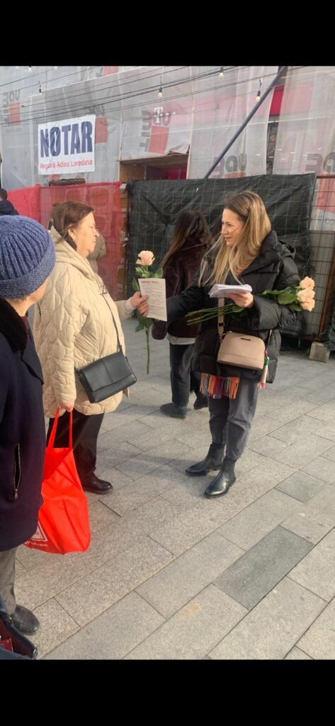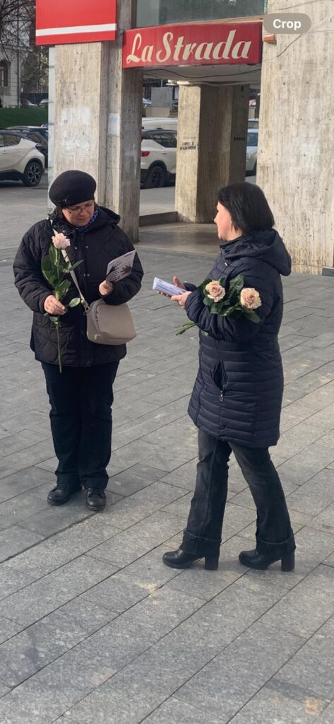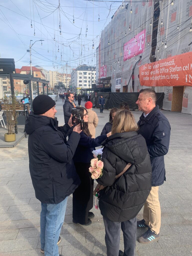 Membrii USR Suceava – femei și bărbați – au distribuit pliante informative și flori tinerelor și doamnelor, oferind sfaturi practice despre metode de protecție atât în mediul familial, cât și în spațiile publice sau profesionale.