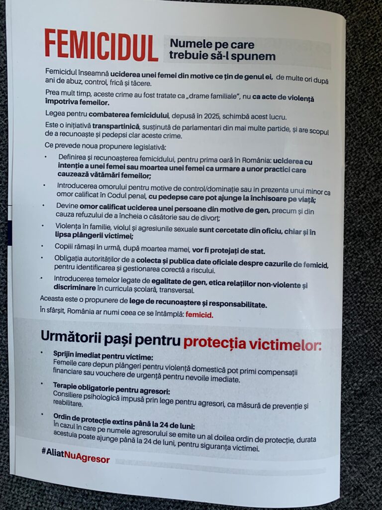„Am participat la această acțiune pentru că tăcerea nu salvează vieți. Informarea, însă, da. Puțini știu că în judeţ funcționează un centru multifuncțional pentru victime, la Gura Humorului, unde femeile pot primi sprijin psihologic, juridic și cazare de urgență. Trebuie să facem mult mai cunoscute aceste servicii și să încurajăm victimele să ceară ajutor atunci când sunt în pericol”, a precizat și Claudia Șuhani, membră a Biroului Județean USR Suceava.