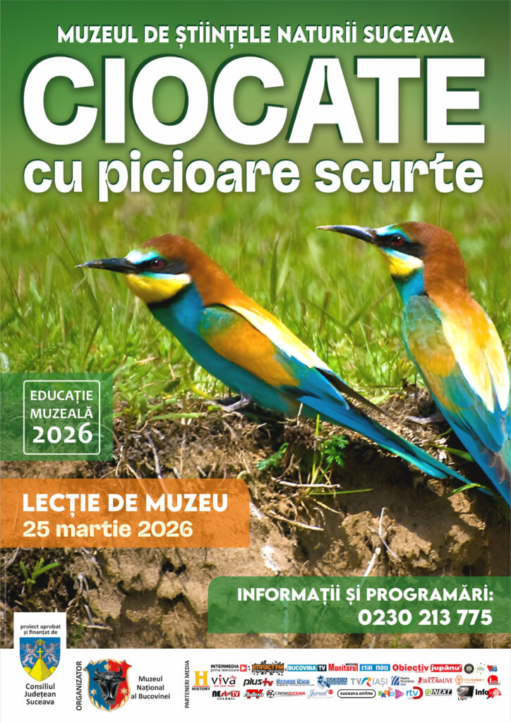 Muzeul Național al Bucovinei organizează miercuri, 25 martie 2026, la Muzeul de Științele Naturii din Suceava, lecția de muzeu intitulată „Ciocate cu picioare scurte”, dedicată Echinocțiului de primăvară.