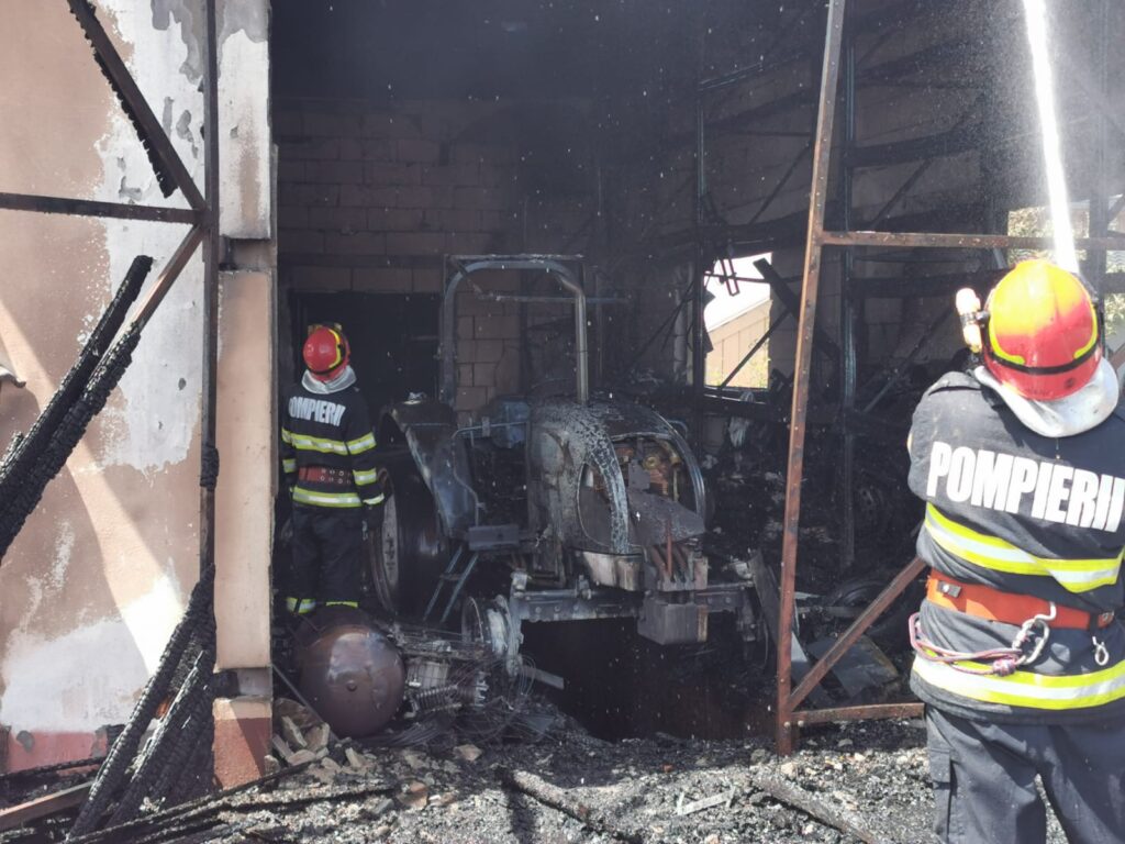 Au ars garajul și podul casei pe o suprafață totală de aproximativ 300 de metri pătrați. Din interiorul garajului au ars un tractor, utilaje agricole și s-au degradat bunuri din interiorul unei camere frigorifice, corp comun cu garajul.