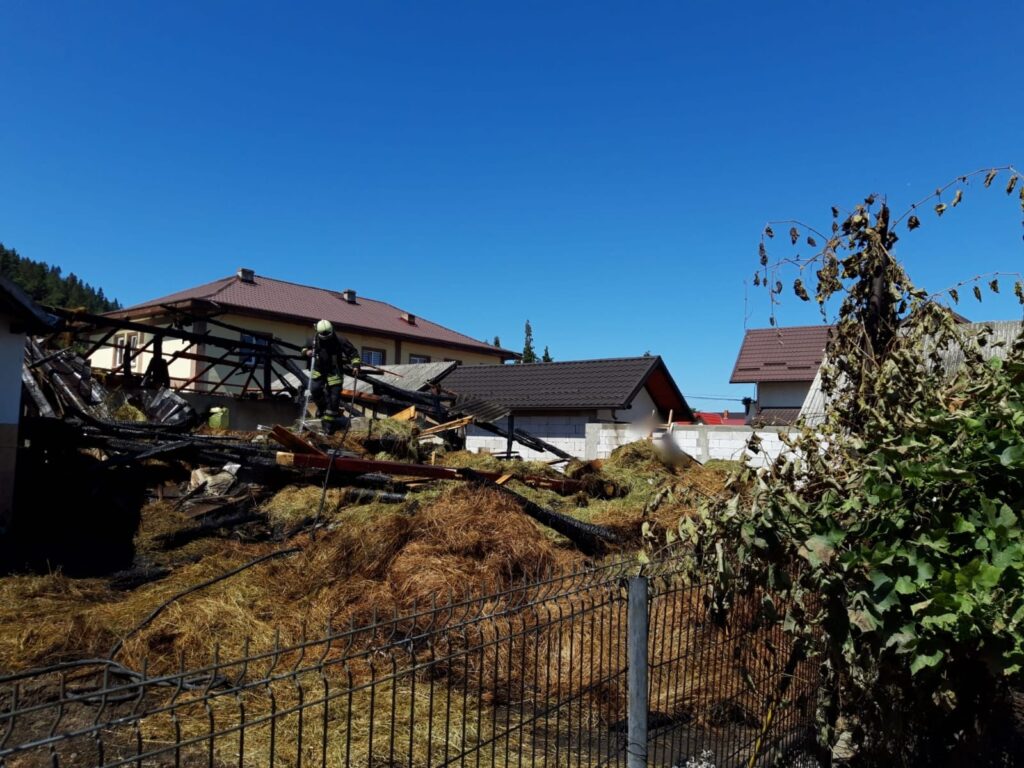 La sosirea echipajelor, ardea violent o anexă gospodărească, cu pericol de propagare la casa de locuit.