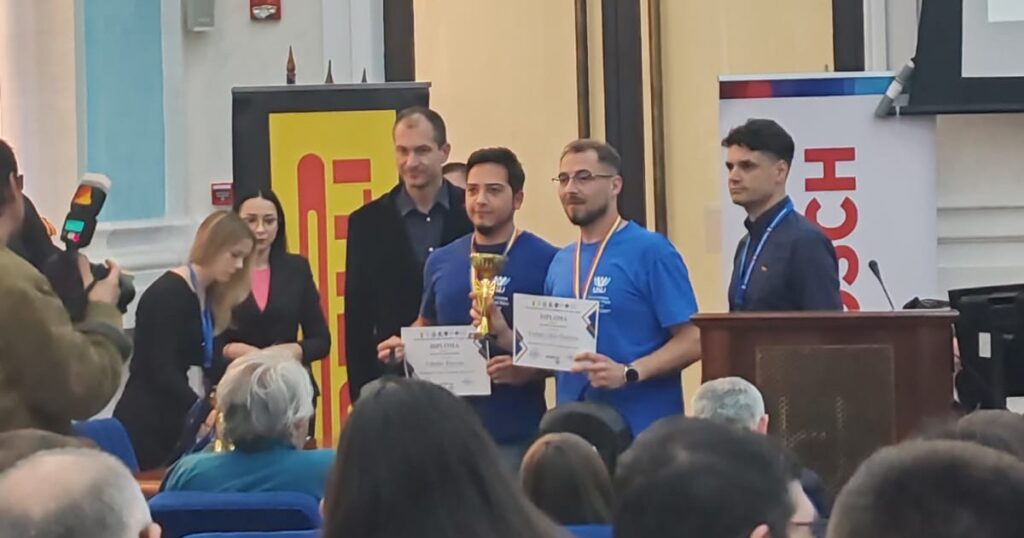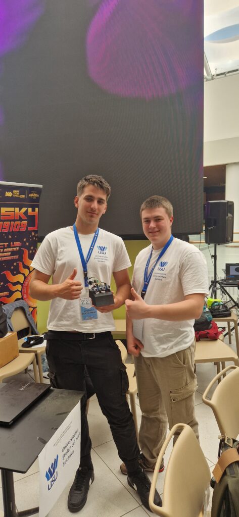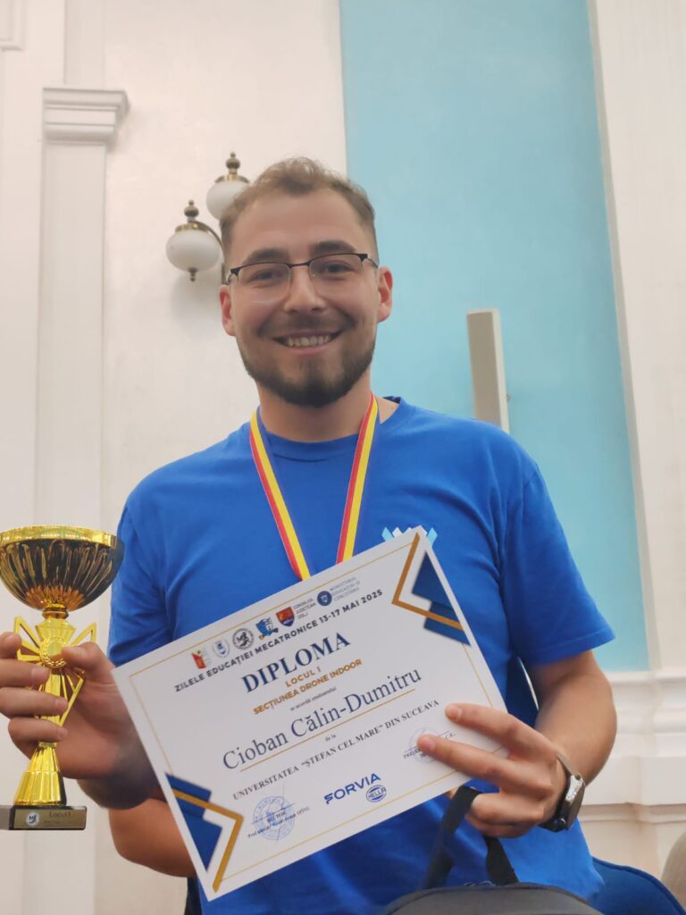 La proba de Sisteme Mecatronice de Zbor Indoor (drone), unde au concurat studenți din opt centre universitare, echipa USV, formată din studenții CIOBAN Călin – Dumitru (anul IV MCT) şi UDUDEC Răzvan (anul II MCT), s-a clasat pe primul loc.